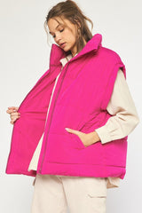 Solid Quilted Puffer Vest Magenta