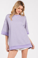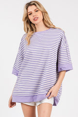 Striped Oversized Short Sleeve Top Lilac