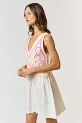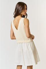 Sweater Mix Embroidery Babydoll Dress Cream/Pink