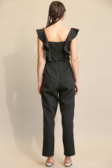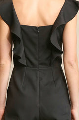 Sweetheart Neck Flutter Sleeve Jumpsuit Black