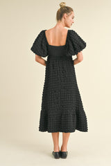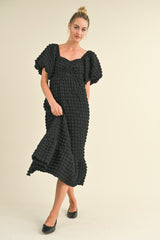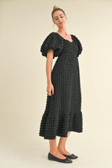 Textured Bubble Sleeve Midi Dress Black