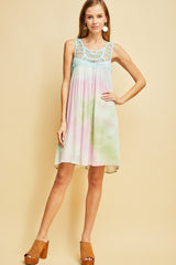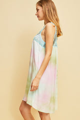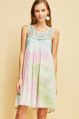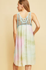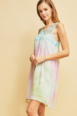 Tie dye shift dress featuring Non-sheer. Fully lined. Woven. Lightweight.