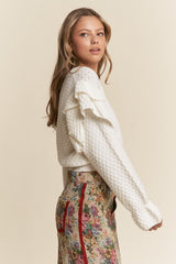 Tiered Ruffle Long Sleeve Sweater Top Cream