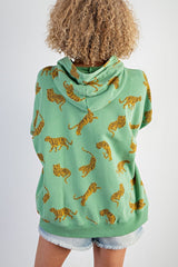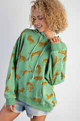 Tiger Print Mineral Washed Hoodie Top Apple Green