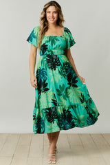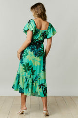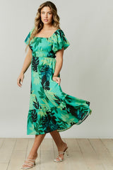 Tropical Leaves Print Midi Dress Green