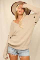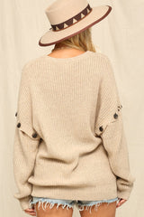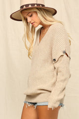 V-Neck Knit Sweater with Buttons Oatmeal
