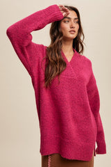 V-neck Slouchy Soft Knit Sweater Cranberry