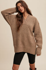 V-neck Slouchy Soft Knit Sweater Taupe
