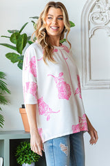 Vintage Rose Print Top Pink