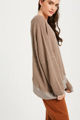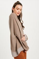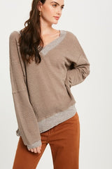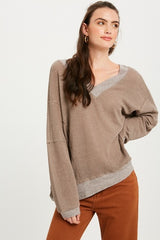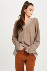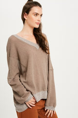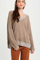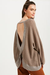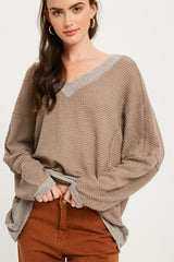 Waffle texture open back drop shoulder top. Waffle textured knit fabric. Drop shoulder. Open back with rib.