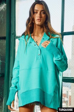 Washed French Terry Oversized Hoodie Turquoise