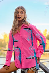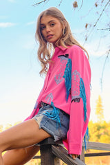Western Cowboy Fringe Boots Shirt Hot Pink