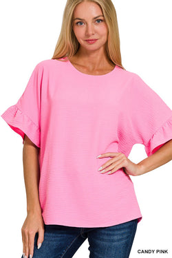Woven Airflow Ruffle Sleeve Top Candy Pink
