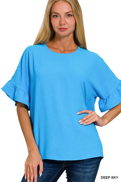 Woven Airflow Ruffle Sleeve Top Deep Sky