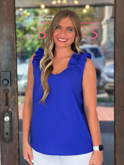 Woven Ruffle Trim Sleeve Top Blue